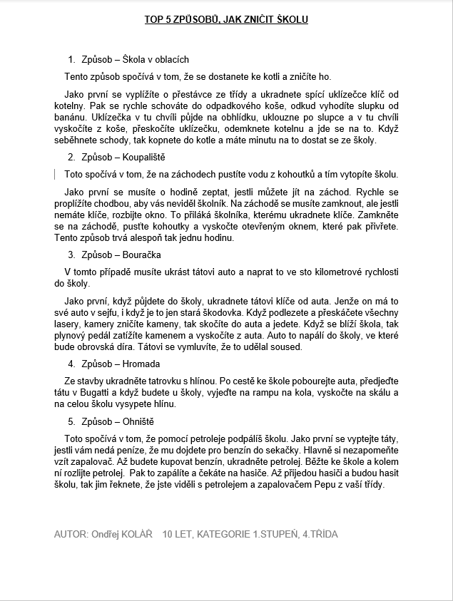 GRATULUJEME ONDROVI KOLÁŘOVI ZE 4.TŘÍDY K VYNIKAJÍCÍMU ÚSPĚCHU V LITERÁRNÍ SOUTĚŽI!