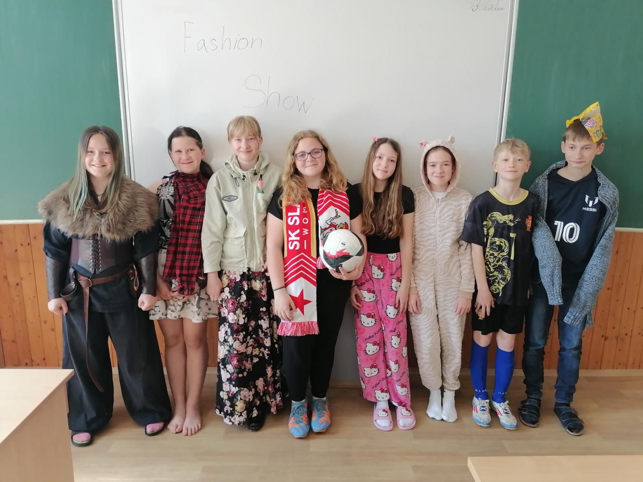 V hodinách anglického jazyka v 6.třídě jsme probírali slovní zásobu kolem oblečení a doplňků a děti napadlo, že by si mohly udělat módní přehlídku. Každý si mohl přinést oblečení podle své volby - bláznivé, společenské, sportovní apod. Hlavním úkolem bylo své oblečení popsat a to samozřejmě v angličtině. Všichni žáci si tuto akci moc užili.